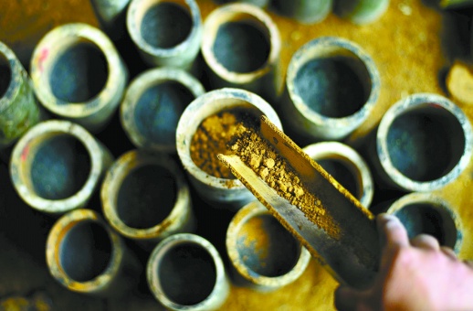 3月1日,张清龙为龙头上色。张清龙54岁,自8岁起开始学习扎龙,12岁出师,是马颈坳唯一扎火神龙的艺人。