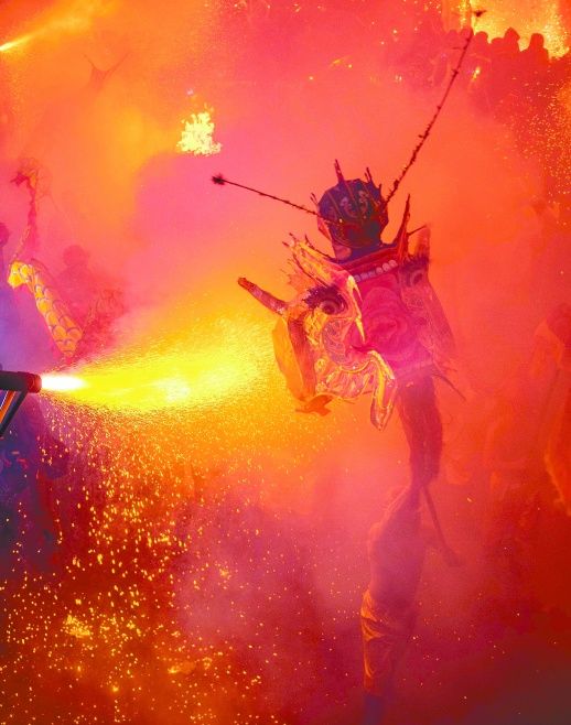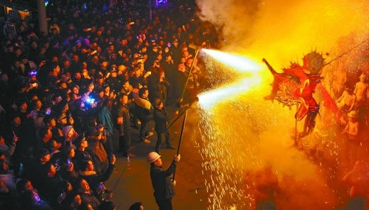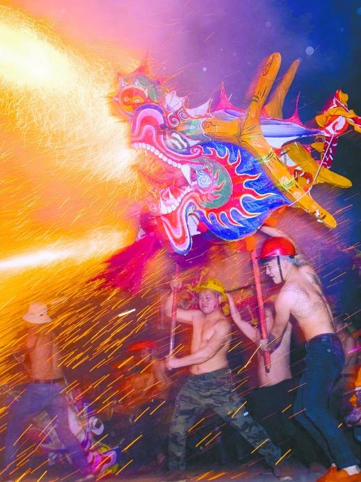 3月2日晚,舞龙人在钢火下狂欢,观众如潮,呐喊声此起彼伏。