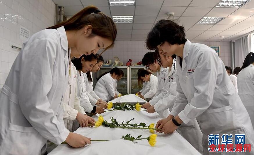 天津医科大学基础医学院学生代表在解剖楼向“大体老师”敬献鲜花。(新华社记者岳月伟摄)