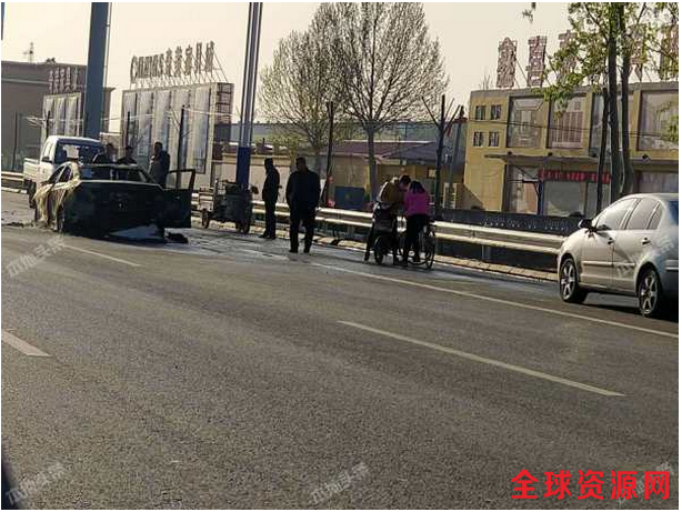 车辆已经烧得面目全非,目击者称,车辆可能是北京现代一款汽车。.
