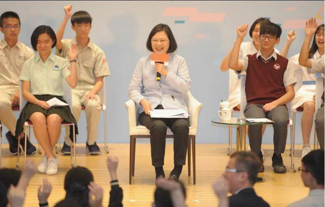蔡英文12日与台湾高中生座谈。(图片来源:台湾“中时电子报”)