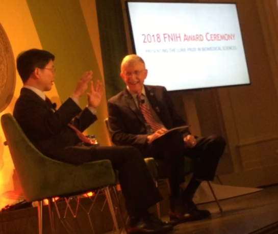 美国国家卫生研究院院长弗朗西斯·柯林斯在颁奖仪式上和陈志坚对话