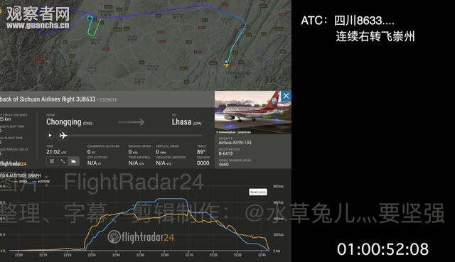 20几秒后,ATC连续呼叫8633航班,要求其连续右转飞崇州。