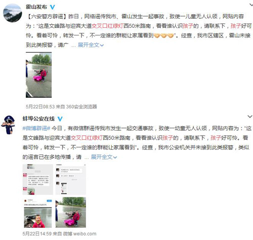 目前,山东的济南、日照,安徽的蚌埠、黄山以及山西晋城等地警方均已辟谣,该事故并非在当地发生。至于具体事发位置,目前并没有查到。据警方介绍,全国多个城市有“文峰路”“迎宾路”,相同的地名也是此次谣言迅速传播扩散的成因。且早在5月6日,就有河南唐河自媒体对此辟谣,“希望大家不要混淆地域观念耽误救援”。