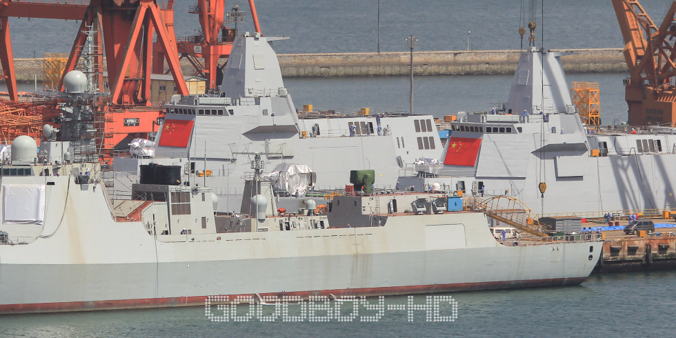 注意!在照片中,除了2艘同步建造的055,还有2艘状态相近的052D。(资料图)