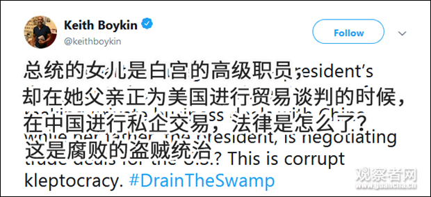 美国网民也对此事表示不满,有的痛批伊万卡“腐败”: