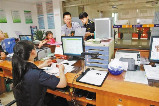 龙城街道的工作人员在为居民办理计生证明。本报资料照片