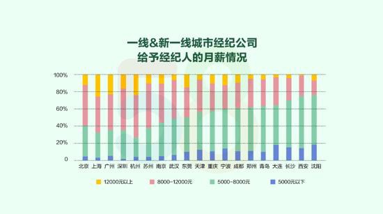当然,投入大量时间和热情为他们带来了不错的业绩。调查显示,全国超过85%的经纪人每月都能实现签单(含租赁和买卖),稳定的签单量带来可观的收入,一线城市60%中介公司给予的月薪资超过8000元,普遍高于新一线城市。