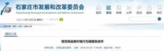 为认真贯彻落实国家发改委《商品房销售明码标价规定》、河北省《商品房销售明码标价规定实施细则》,规范我市商品房市场价格行为,维护公开、透明的市场价格秩序,保护交易双方合法权益,根据《中华人民共和国价格法》、《价格违法行为行政处罚规定》和国家发改委《价格监督检查提醒告诫办法》等有关法律法规,按照石家庄市人民政府办公厅《关于立即开展房地产违规开发销售集中整治暨“回头看”行动》的通知要求,现对我市房地产开发企业和商品房经营者提醒告诫如下: