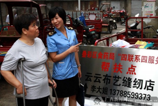 李大姐三十年前就学会了缝纫手艺,但因她腿有残疾,工作一直都不稳定。去年,李大姐不小心摔断了腿,手术治疗借一大笔债,医保报销后还欠下近两万元的债无力偿还,生活十分困难。2017年叠彩区政府开展“四联系四服务”活动,她成了叠彩区食品药品监督管理局黎晓云的联系帮扶对象。