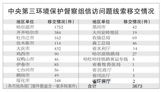 原标题:中央第三环境保护督察组向我省移交3673件信访问题线索