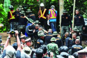 另外,泰国海豹突击队员继续教小球员们学习潜水,以便万不得已的情况下让他们潜水出洞。然而,随着一名以志愿者身份参加救援的前特种兵6日潜水时溺亡,这一方案越发受到质疑。