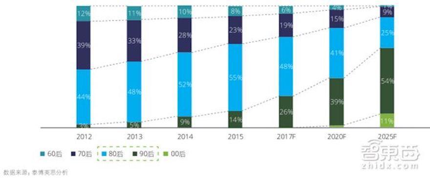 2017年上半年,80后是当前汽车市场的消费主力,占比达到48%,90后消费者尽管占比不到30%,但增速抢眼;到2025年,90后将取代80后成为中国汽车消费的主力军。