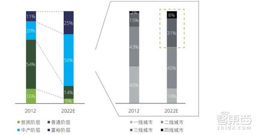 从收入水平看,据麦肯锡此前统计,到2022年中产阶级及以上占比将提升至81%,而来自三四线城市的中产阶层将出现最大幅度的增长,跃升成为中国家庭消费总量和新增消费的最主要贡献力量。再结合区域看,长三角、粤港澳大湾区、长江中游、成渝地区和京津冀等五个城市群中的三四线卫星城市,将领跑中国未来十年的消费增长。