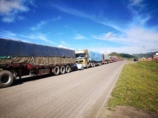 滞留货车排成长龙