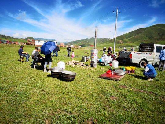 受洪涝灾害影响,近期阿坝州境内灾害频发,茂县与理县方向道路坍塌,致使200余辆大货车滞留在若尔盖红星镇境内超过3天,500多名驾驶员时刻面临没有饭吃,没有水喝的困境。若尔盖红星镇回民村村民得知此情况后,村民们自发组织,从7月13日开始,在路边为驾驶员煮饭,烧水,初步计划先连续四天,每天免费为驾驶员提供一顿热饭和热水。