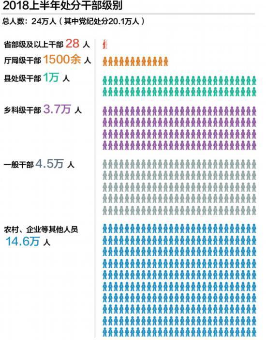 处分省部级及以上干部28人,厅局级干部1500余人,县处级干部1万人,乡科级干部3.7万人,一般干部4.5万人,农村、企业等其他人员14.6万人。