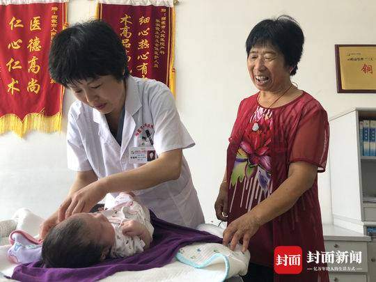 7月19日,山东省栖霞人民医院妇产科迎来了两位特殊的访客。一名只有一个多月的大胖小子,在姥姥的怀抱里睡的正香,妇产科副主任牟朝晖接过孩子,检查一遍,“一切正常!”
