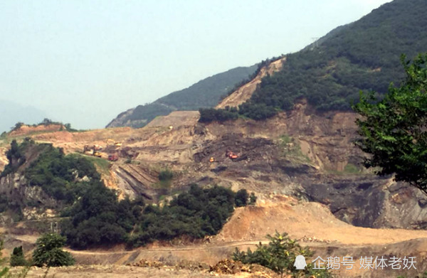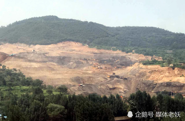 在群众的指点下媒体赶到几个采矿点,几个采区内都是机器轰鸣,运输土方的大车来回的穿行,过去后车后面都是一阵粉尘。开采区都是露天开采,没有任何除尘设施,树木上到处都是一层厚厚的灰尘,山体原生态被严重破坏,被挖的铝石矿深达几十米,满山遍野的荒凉之景。