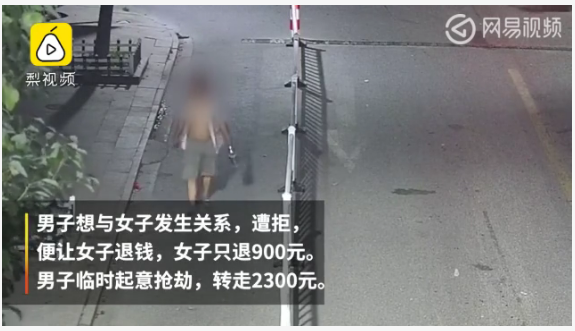 【男子花1千约附近的人陪聊起色心,遭拒后反打劫对方2300元】7月16日,浙江嘉兴,一名女子从附近的人添加好友,对方提出给女子1000元约出来聊天。在聊天的过程中,男子想与女子发生关系,遭到女子拒绝后便起了歹心,反打劫女子2300元。