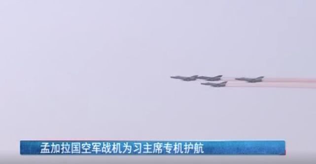 2016年10月14日,习近平对孟加拉人民共和国进行国事访问。当他乘坐的专机进入孟加拉国领空时,孟加拉国空军战机升空护航。