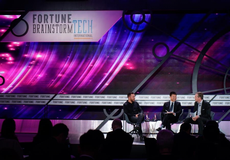摩拜单车联合创始人兼首席执行官王晓峰(中)与共享汽车公司Getaround创始人兼首席执行官萨姆·扎伊德(左)在财富国际科技头脑风暴大会上围绕出行科技革命展开对话(12月5日摄)。从12月6日开始,《财富》全球论坛2017年会在羊城广州举行。这是全球工商界领袖与知名专家学者的思想盛宴,也是全球市场人士研判世界经济格局变化、抢占发展与合作先机的重要平台。开放、包容、普惠、平衡、共赢……透过论坛,新时代中国的发展政策主张得到清晰地传递;捍卫、构建、重塑、驱动、创新……深度调整、曲折复苏中的世界经济,也透过“财富之眼”,更深刻感受到了动能强劲的“中国贡献”。新华社记者 刘大伟 摄