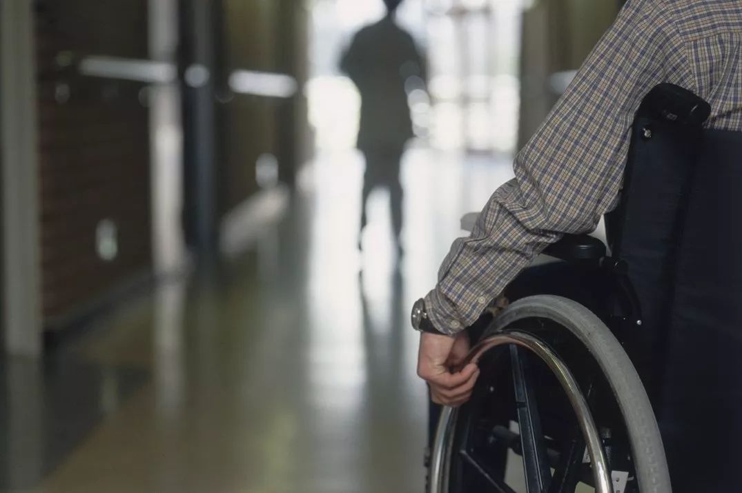 女儿竟然自己会推轮椅了