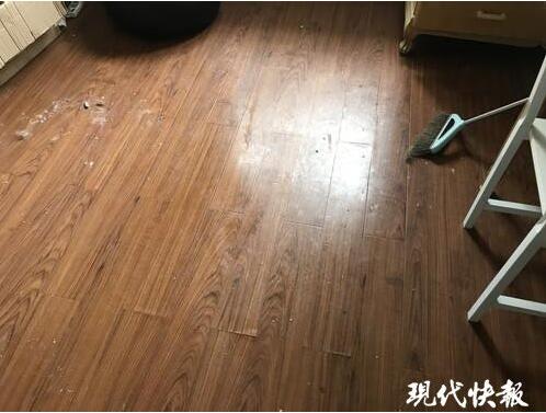 现代快报记者跟随张先生来到他的家中,发现地上粘糊糊的,张先生表示因为地上有狗的排泄物。而阿拉斯加犬则呆在阳台上,地上同样有不少排泄物。