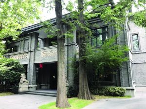 几经周折,最终记者还是进入了公馆。院内林木葱郁,水杉比小楼还高。南幢小楼前,一对石狮子把门,颇为威风。如今,这院落由一家翡翠公司租用,作为翡翠文化园。南楼为销售展示区,北楼为办公区。