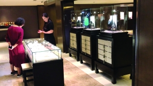 其中,南幢负一楼为卖场,柜台里展示着各种翡翠饰品,分为普通和收藏两个级别,面向高端人群,采用会员制。二楼三楼则为博物馆,一些价值连城的翡翠在博物馆区进行展示。要想进院子,首先必须是会员,而且要提前预约。