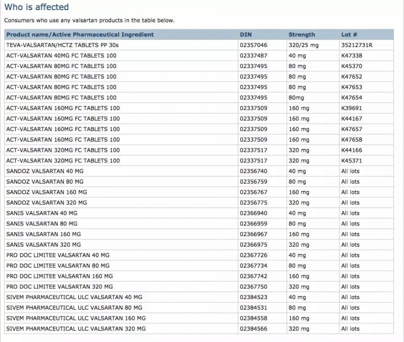7月10日,加拿大卫生部(Health Canada)在其官网上发表通告,宣布召回28种有致癌风险的降压和心脏病药;