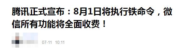 人民网北京7月26日电(孝金波 王晨羽)近期,有不少文章称“腾讯宣布8月1号微信所有功能将全部收费。”7月25日,微信团队声明:“该说法严重失实。”实际情况是,8月1日起,微信的信用卡还款功能将进行调整,收取一定的手续费,除此项调整外,其他微信产品均无任何收费说法。