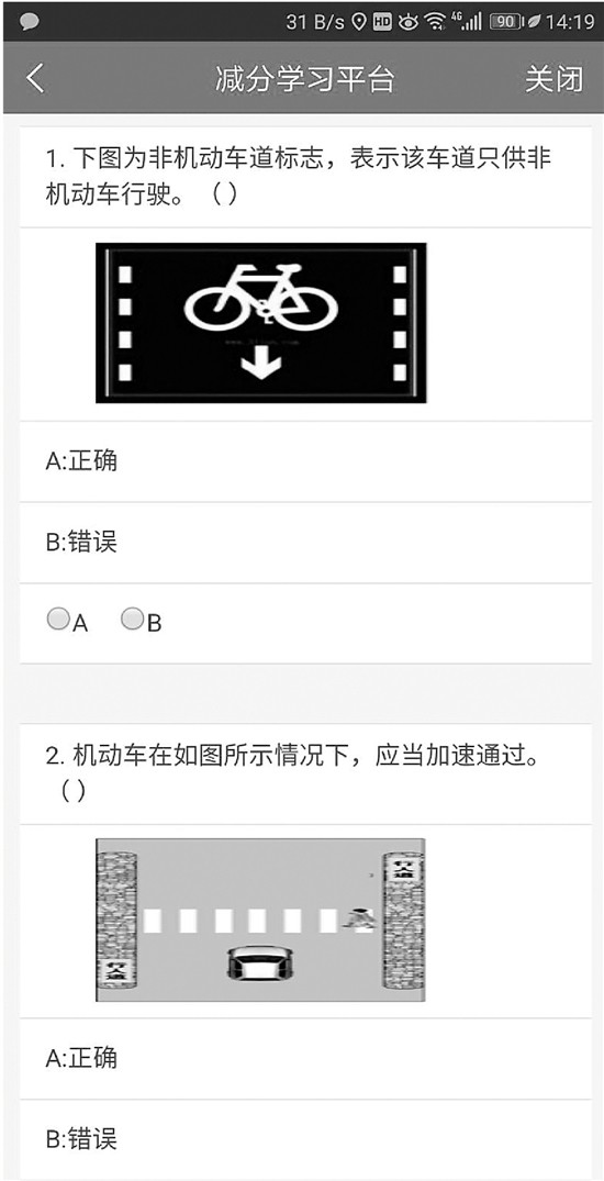 要不再试试看,何先生再次进入答题界面,这回做对了9道,又获得了两张减分券。“一共4张,可以抵扣4分呢。”何先生很激动,立刻把一个3分的违章在手机上处理掉了,“可以用,非常方便。”