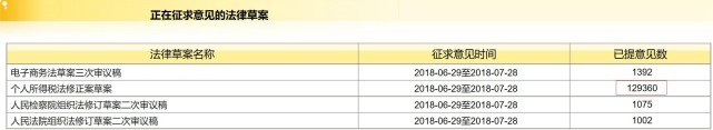 中新经纬客户端7月28日电 (董湘依)中国人大网6月29日公布《中华人民共和国个人所得税法修正案(草案)》全文,并向社会公开征集意见。今天(7月28日)是截止日期最后一天,汇集意见数已接近13万条。