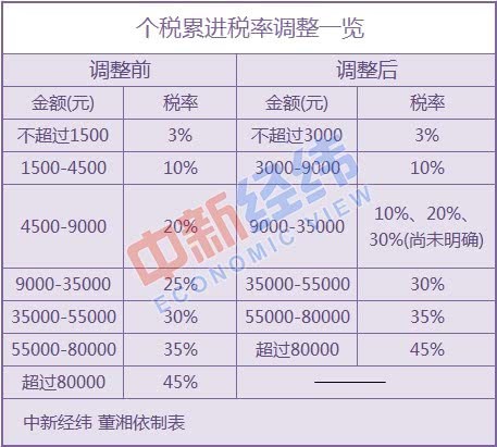 值得一提的是,此次修订迈出了综合税制第一步,把工资薪金所得、劳务报酬所得、稿酬所得、特许权使用费所得四项劳动所得都纳入综合征税范围,并适用3%到45%的七档超额累进税率。