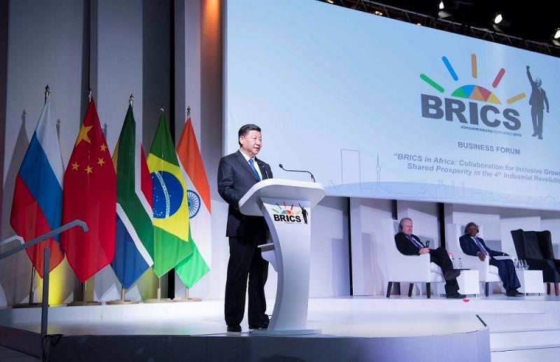 2018年7月25日至27日,习近平主席出席在南非约翰内斯堡举行的金砖国家领导人第十次会晤。