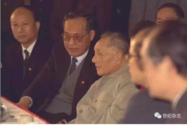 邓小平视察国贸大厦 时与时任深圳市委书记的李灏交谈