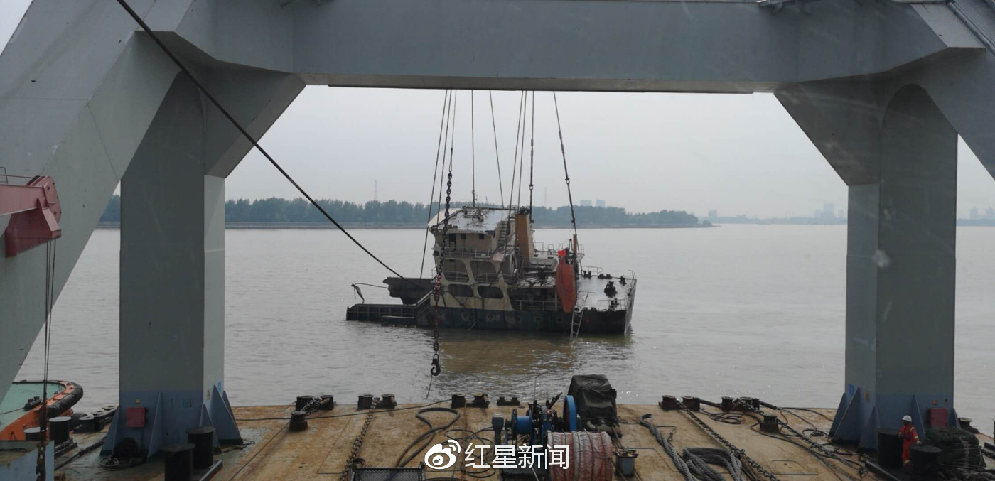 红星新闻从多名家属及海事部门工作人员处获悉,今日上午,浮吊起吊,驾驶室顶棚最先浮出水面。搜救人员先在轮船三楼发现两名遇难者遗体,又在轮船二楼找到一人。
