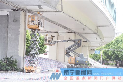 南宁市政部门提醒,此次6座跨江大桥美观整治,施工期间可能占用桥面人行道及非机动车道,市民路过需注意现场交通标识,绕道经过。(记者 黎兆齐)