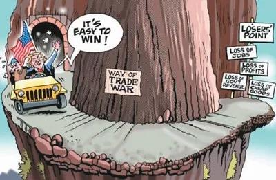 特朗普一边高喊“打赢很容易!”一边驶向“贸易战之路”,而路的尽头是失业、亏损、政府税收损失和便宜商品减少等恶果。