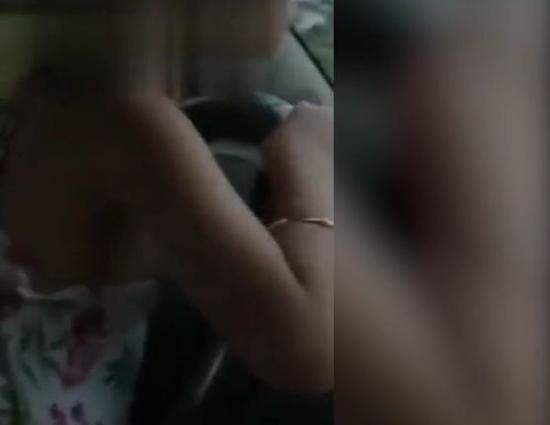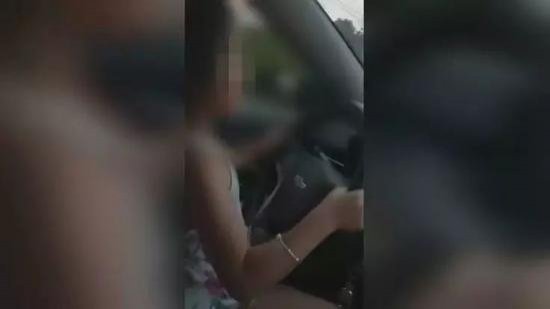 后因女儿在后排座位上吵闹不休,加上孩子父亲又特别宠爱,女儿钻到了驾驶室,她便让女儿跪坐在自己的双腿之间握方向盘驾驶,但脚下的都是由自己控制,女儿大约开了有一分多钟,行驶距离约有 1 公里。