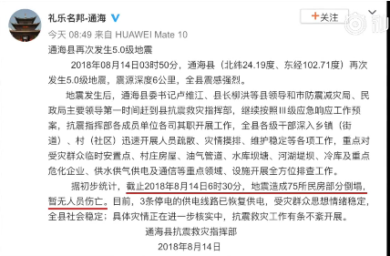 【云南通海两天内发生余震15次 当地居民不敢回家睡在车里】8月14日,云南通海县再次发生5.0级地震。两日来,当地已经发生15次地震。通海县当地居民为防范地震带来的危险,选择在户外住宿,当地居民王先生表示,有人睡在帐篷中,也有人睡在车里或者体育场里。