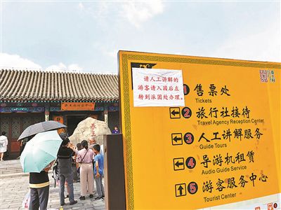 北青报记者查询发现,《北京市旅游条例》第31条规定,故宫、天坛、颐和园、八达岭长城、明十三陵、周口店北京人遗址等列入世界文化遗产名录的景区实行讲解员管理制度。在前款所列景区内,为团队旅游提供讲解服务的,应当取得景区讲解员证。景区讲解员由景区负责管理,经培训合格的人员,由景区颁发讲解员证。未取得景区讲解员证的人员,不得在前款所列景区内从事团队旅游讲解活动。