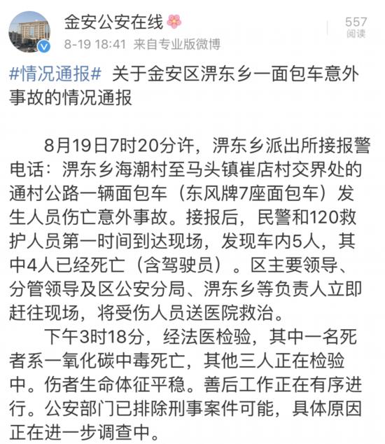 原标题:六安一面包车内四人不明原因死亡 警方发布通报