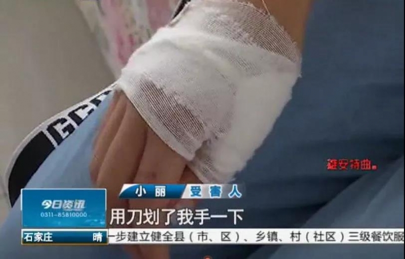 受害人小丽说:“正好胶布也不怎么结实,我就给挣开了。然后我就开始骂他,我就开始反抗,我反抗的时候用刀划了我手一下。”