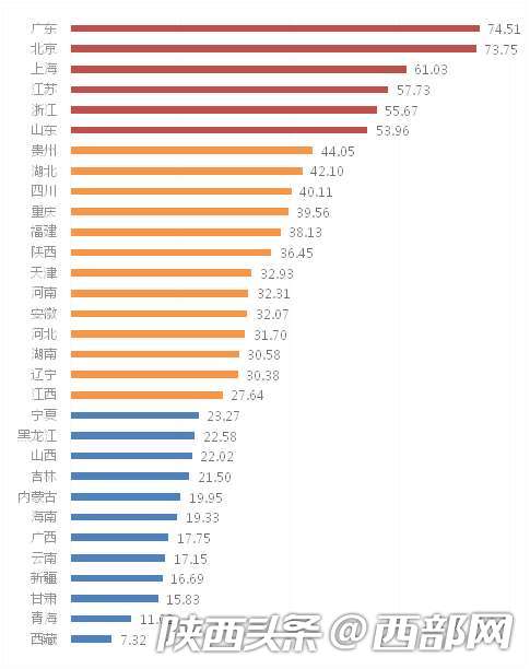《报告》显示,陕西大数据发展指数排名全国第12,在大数据产业和大数据应用这两个分项指标上,分列全国第14和全国第16;大数据技术研发创新指数位居全国第10。