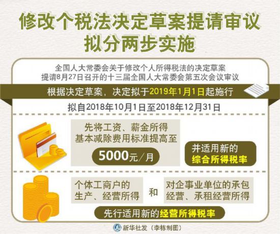 原标题:修改个税法决定草案提请审议 拟分两步实施