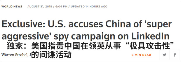 领英负责安全方面的官员罗克韦尔(Paul Rockwell)向路透社证实,该公司一直在与美国执法机构就所谓“中国间谍活动进行沟通。本月早些时候,领英透露,该公司已经删除了“不到40个”虚假账户,这些账户试图联系领英平台上的一些不明政治组织成员。罗克韦尔没有说明这些是不是中国账户。