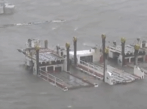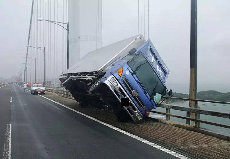 一艘游轮因强风撞上连接机场和陆地的桥,导致这座桥交通中断,机场内大约3000人受困孤岛。