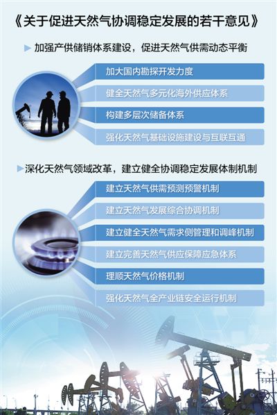 国务院日前印发《关于促进天然气协调稳定发展的若干意见》(以下简称《意见》),提出了加大国内勘探开发力度、健全天然气多元化海外供应体系、构建多层次储备体系等10方面具体举措。如何加强产供储销体系建设?民生用气稳定供应进展怎样?记者采访了国家能源局石油天然气司有关负责人。